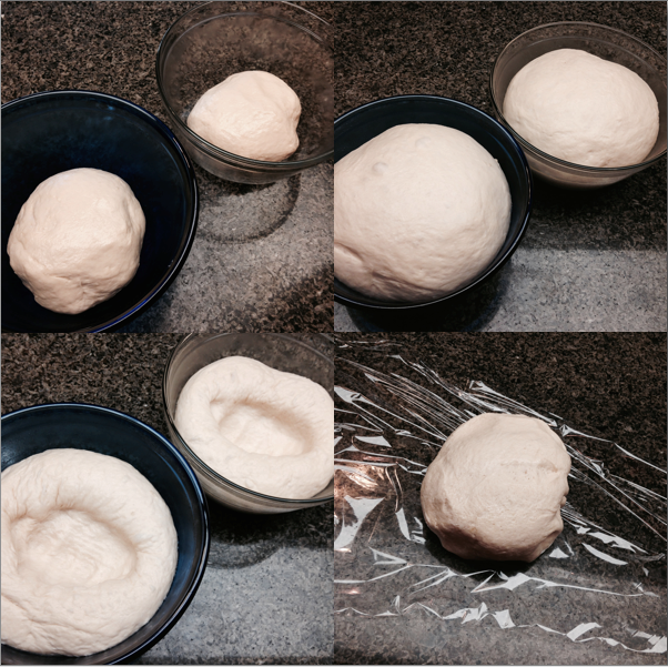 8. After your dough has risen, punch down each dough. If you are going to use it right away, form into the needed shape. If you are going to freeze the dough, form back into a ball and wrap in plastic wrap.