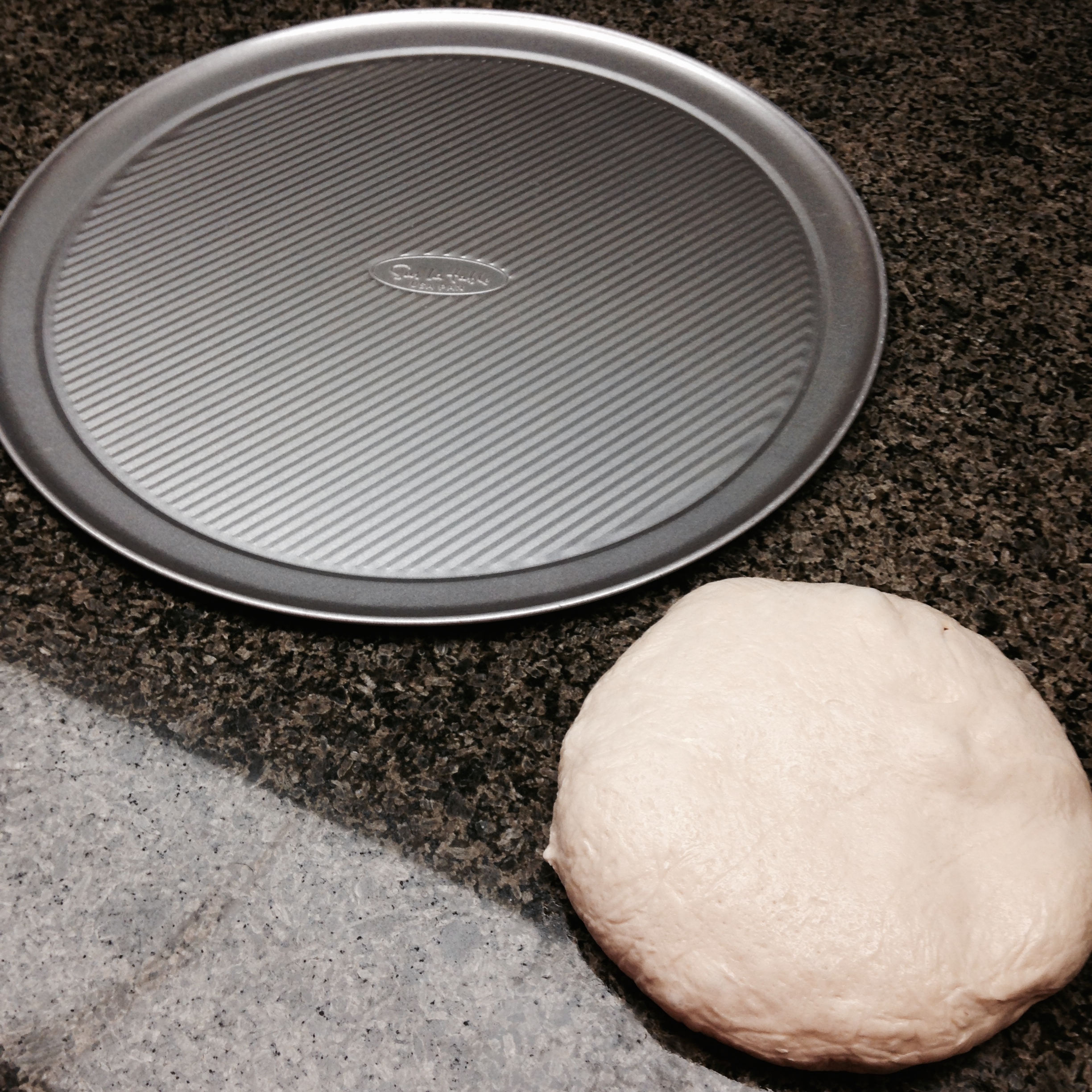 *This will take some practice for those who have never done it before. The goal is to have a round shape with even thickness all over and no holes, but that doesn’t normally happen. Just take your time and shape it the best you can; I’ve had some misshapen pizzas and *cough* might have thrown a few balls of dough in the past.