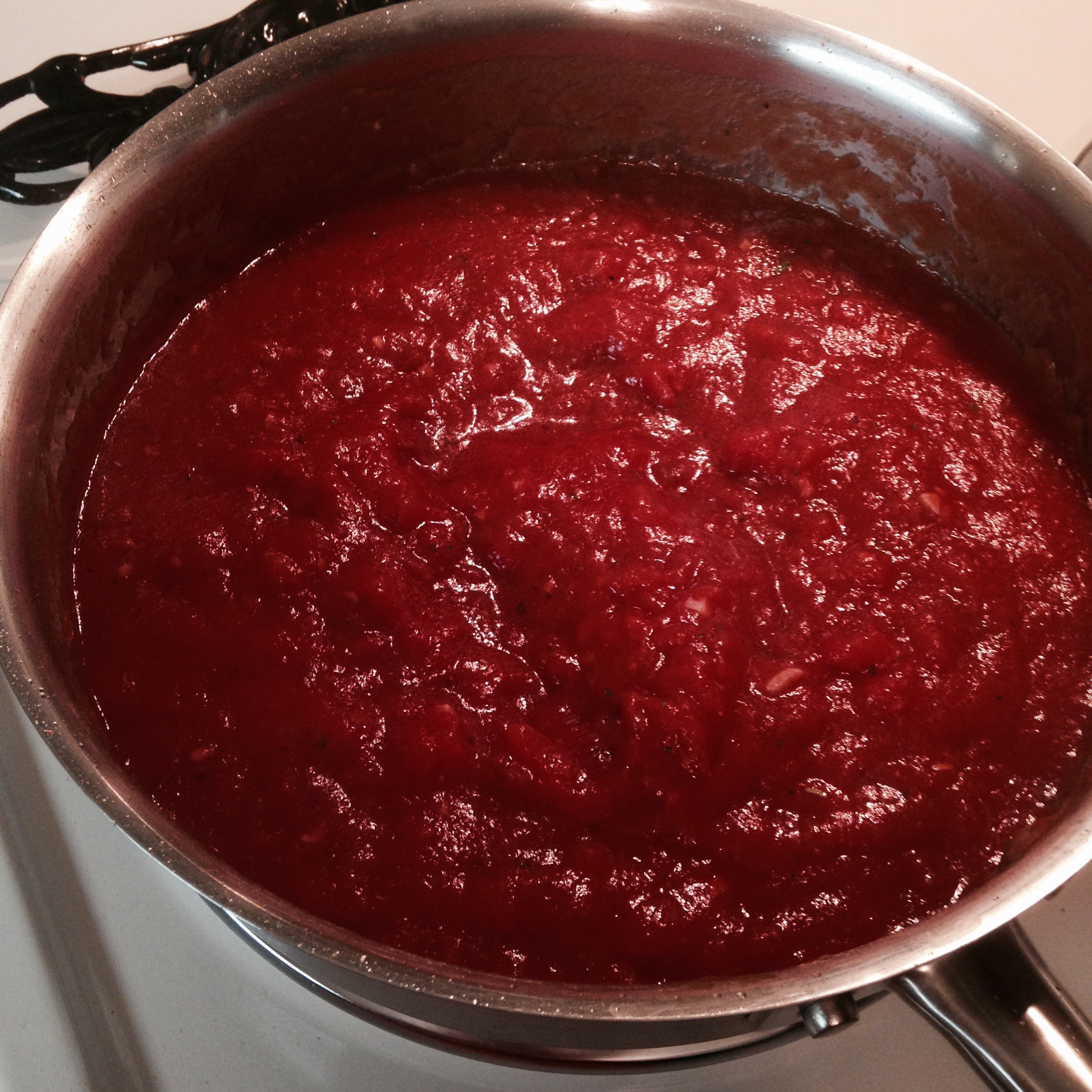 4. When the onion and garlic are softened, add the tomatoes, tomato paste, herbs, salt and pepper. Stir until combined and turn the heat to low. Keep stirring occasionally, until your pasta is finished cooking. *you can start this sauce earlier and cook it for a longer amount of time; this is just a quick way*