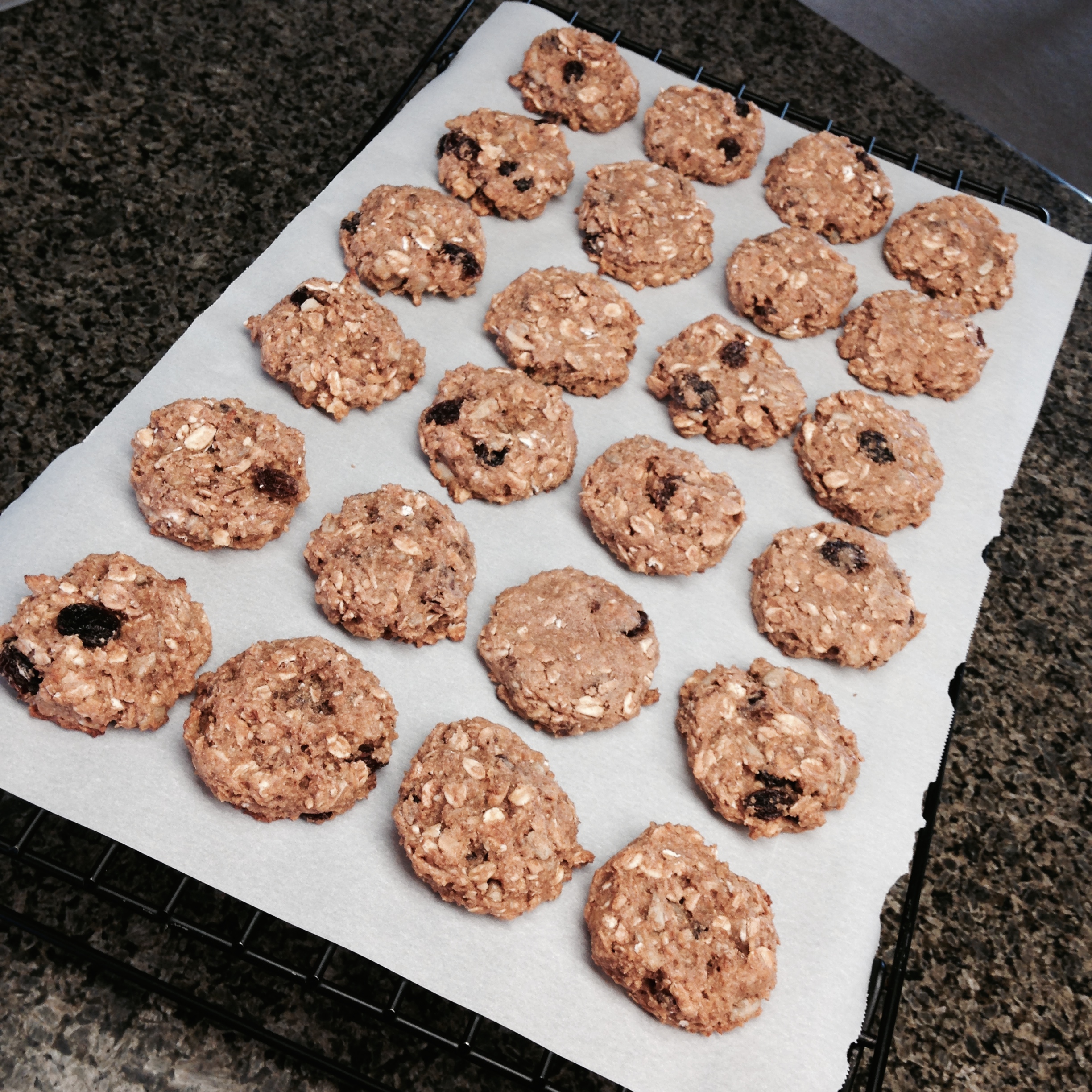 I followed this recipe almost exactly, I just added a little more vanilla extract and made the cookies a little smaller. I’ve seen several different Muesli mixes and they all have different ingredients. I would recommend looking around for one that has ingredients you prefer and doesn’t have any unnecessary ingredients (if you know what I mean). The one I used had slivered almonds, sunflower seeds, and raisins.