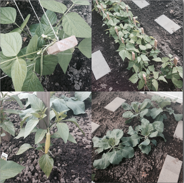 Green beans have started to grow! The plants are huge and tiny little green beans have been growing this week. My dog, Spinaci, loves green beans and has already attempted to steal one.