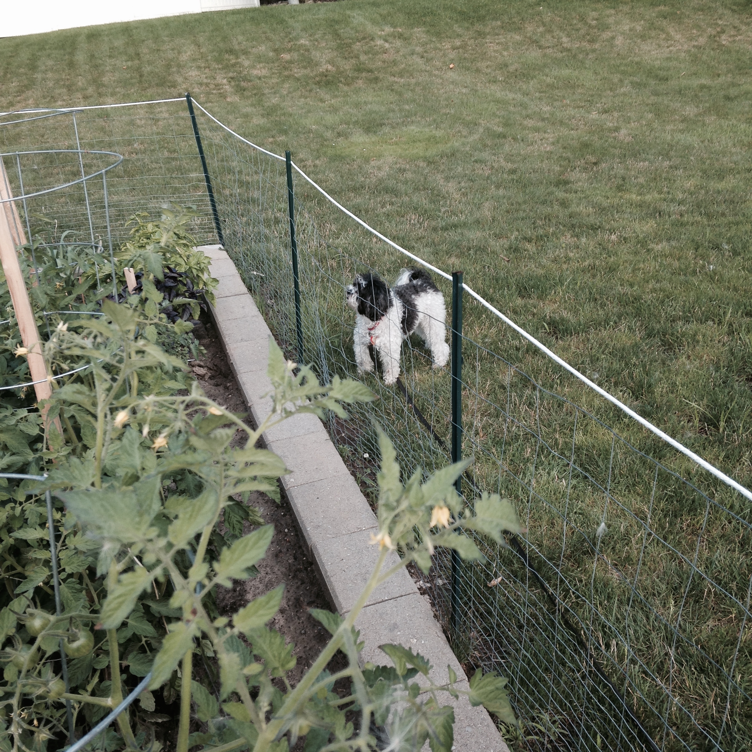 And for a final picture. This is what my dog, Spinaci, does when my mom is picking green beans. He sits outside of the garden, barks, whines, and walks on his hind legs, until we give him a green bean.