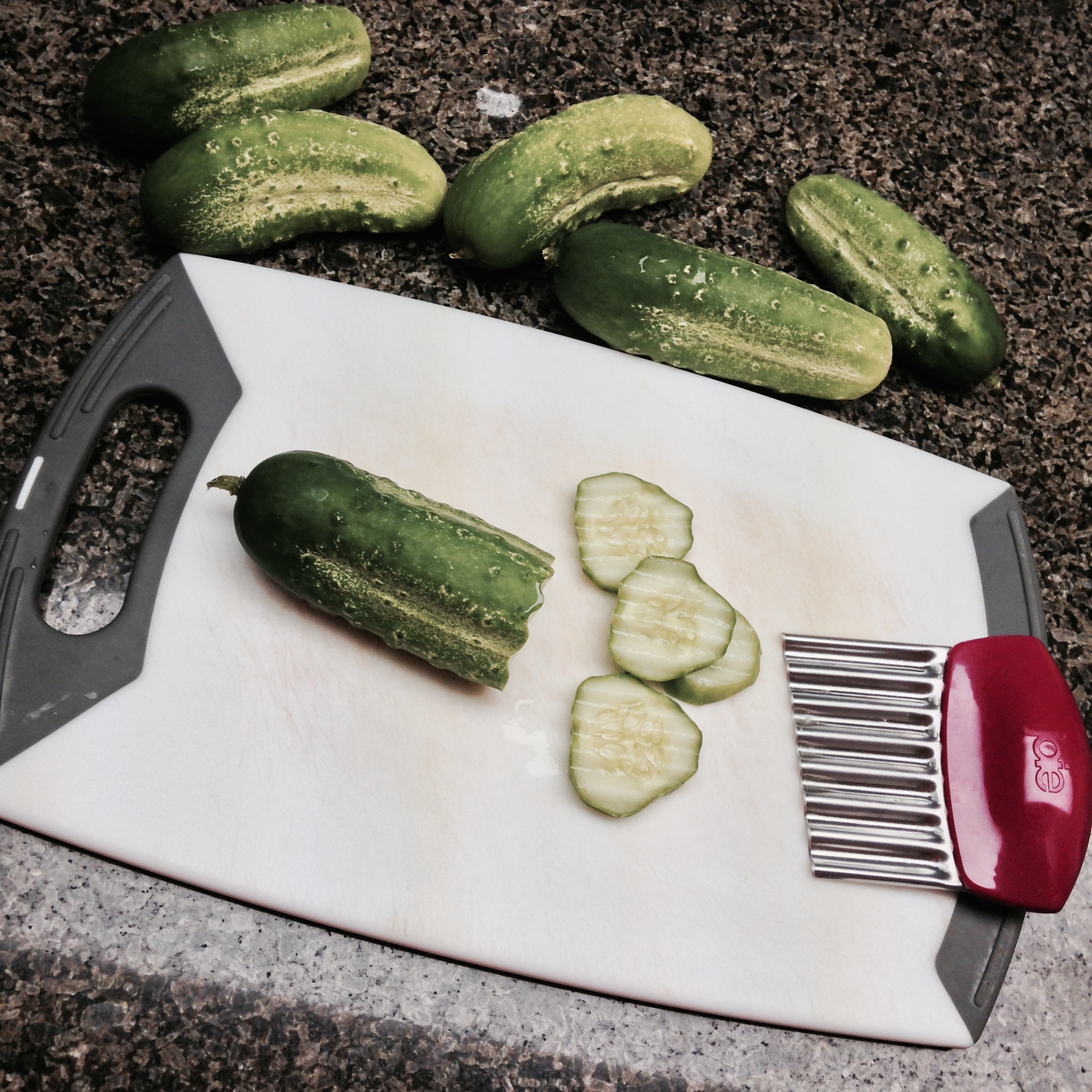 And since the pickling cucumber plant is growing like crazy, I’ve already made pickles too! The next time I make them, I am going to do a post on here with the recipe. I also bought a special knife that creates crinkly pickle slices. I bought mine on a day trip to Amish country, but Sur La Table has one.