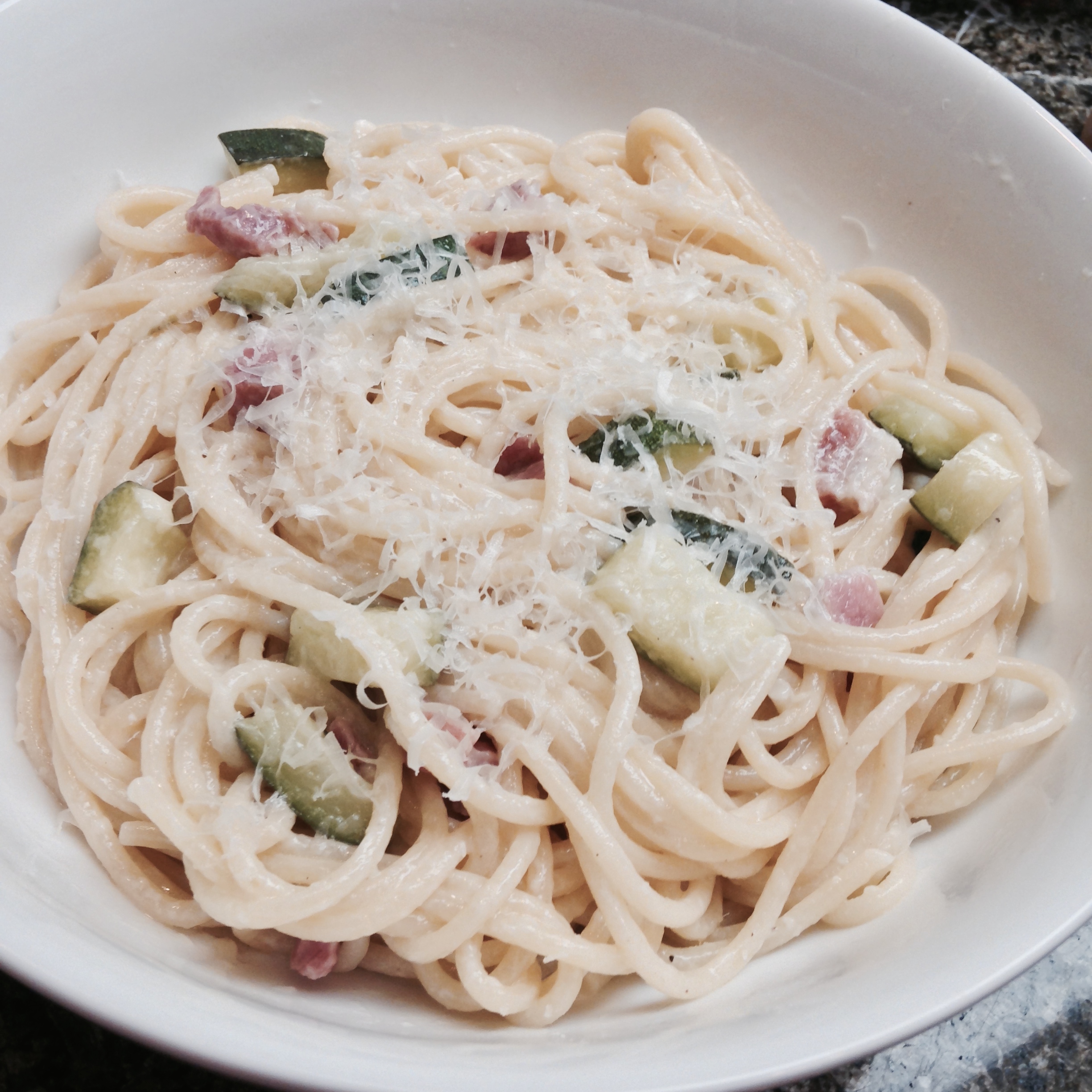 Our zucchini plants did average, we got about 30-35 zucchini. (Our record is 110 in one year) We have been making a lot of zucchini bread, sautéed vegetables, and my favorite – Spaghetti with Zucchini and Pancetta. (pictured above) On my trip to Italy, about a year and a half ago, the first night we had a dish like this. It had fresh fusilli pasta and it was the best thing I have ever eaten. I really wanted my parents to be able to try it, so I figured out how to make it. I don’t know if it is exactly the same, but it tastes pretty close. I took pictures the last time I made it, so I’ll have a recipe post on it soon.