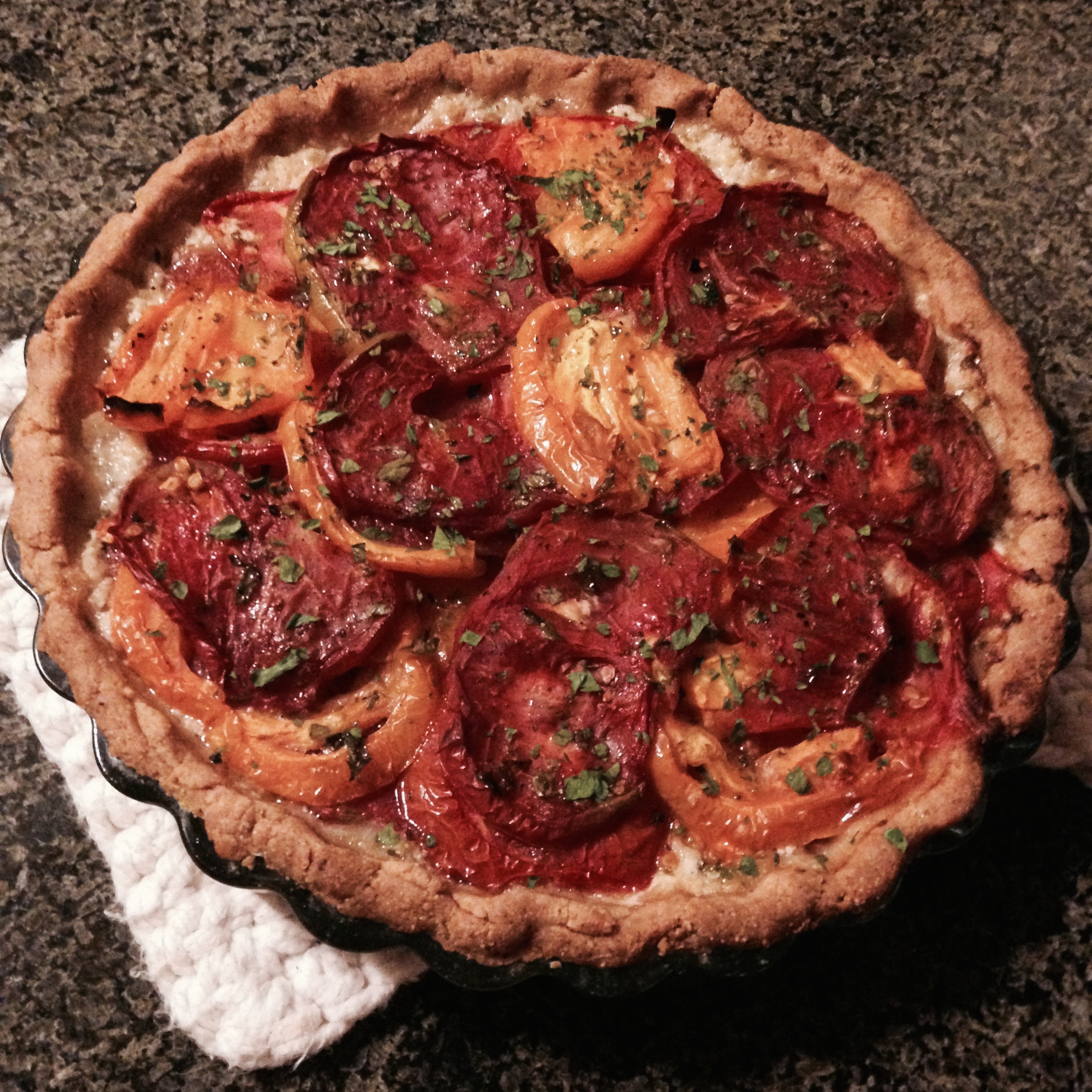 Luckily, our cherry and heirloom tomatoes turned out fantastic! We have been using the cherry tomatoes in salads, quinoa salad, pasta, pizzas, and a lot more. And I use the heirlooms in Heirloom Tomato Pie – a 4 hour process that is well worth it. (pictured above) It has a crust that is made with corn meal and white cheddar, then a layer of mozzarella, white cheddar, sautéed onions, herbs, mayo, and breadcrumbs, and that is topped with big slices of heirloom tomatoes. I make as many of these as possible at the end of summer so they can be sliced and frozen to enjoy all winter (I’m sorry I had to say that word, I apologize).